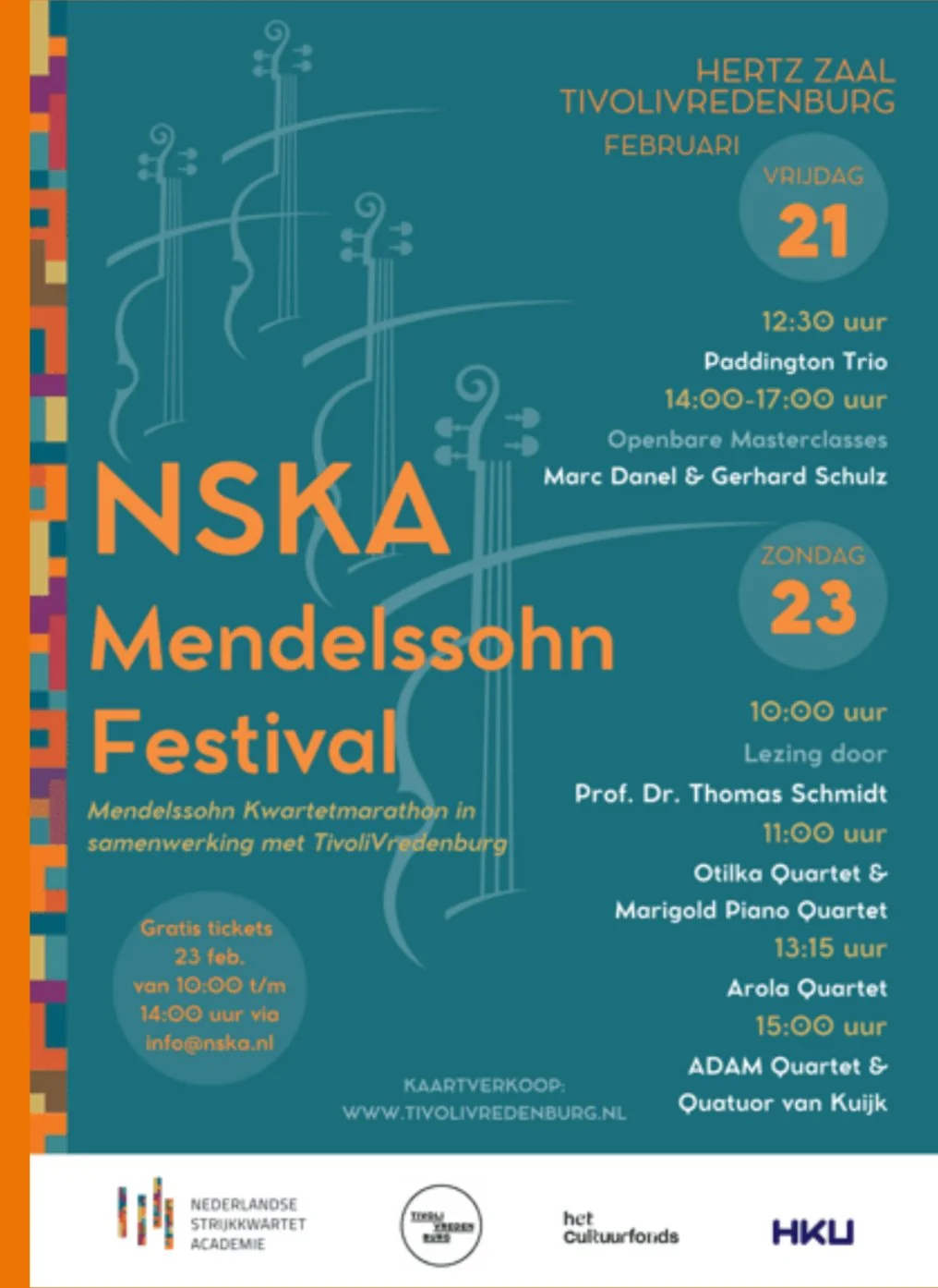 Feb 21 Openbare Masterclass Friday 21 February 2025 2:00 pm 3:30 pm TivoliVredenburg (map) Google Calendar ICS View Event → Dec 15 Weihnachtskonzert Sunday 15 December 2024 11:00 am 4:00 pm Patisserie Johanna (map) Google Calendar ICS View Event → Nov 24 NSKA Concert Sunday 24 November 2024 7:00 pm 8:30 pm NSKA (map) Google Calendar ICS View Event → Nov 15 Concert Friday 15 November 2024 8:00 pm 9:00 pm Huis de Pinto (map) Google Calendar ICS View Event → June 8 to 9 June Muziekfestival ZOOM! Sat, 8 June 2024 10:00 am Sun, 9 June 2024 2:30 pm Landgoed Middachten De Steeg, GE, 6994 Netherlands (map) Google Calendar ICS View Event → Apr 3 Talent Break Wednesday 3 April 2024 12:00 pm 1:00 pm De Doelen (map) Google Calendar ICS View Event → Mar 26 NSKA Concert Tuesday 26 March 2024 7:00 pm 9:00 pm 4 Domplein Utrecht, UT, 3512 JC Netherlands (map) Google Calendar ICS View Event → Mar 26 Public Masterclass NSKA Tuesday 26 March 2024 4:30 pm 6:00 pm Google Calendar ICS View Event → Feb 17 Lunch Concert Saturday 17 February 2024 12:30 pm 1:15 pm Theater Ludens (map) Google Calendar ICS Performing works by Debussy, Schoenberg, Chausson, Ravel and Auric. View Event → Oct 4 Talent Break Wednesday 4 October 2023 12:00 pm 1:00 pm De Doelen (map) Google Calendar ICS Performing works by Schoenberg, Chausson, Bach and Auric View Event →